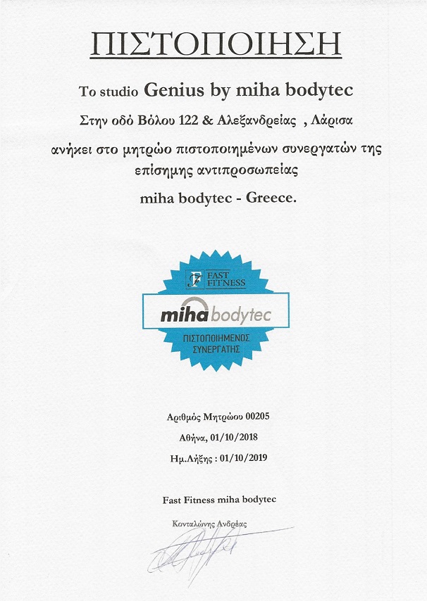 Το studio μας ανήκει στο μητρώο πιστοποιημένων συνεργατών της επίσημης αντιπροσωπείας Miha Bodytec – Greece.